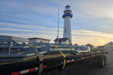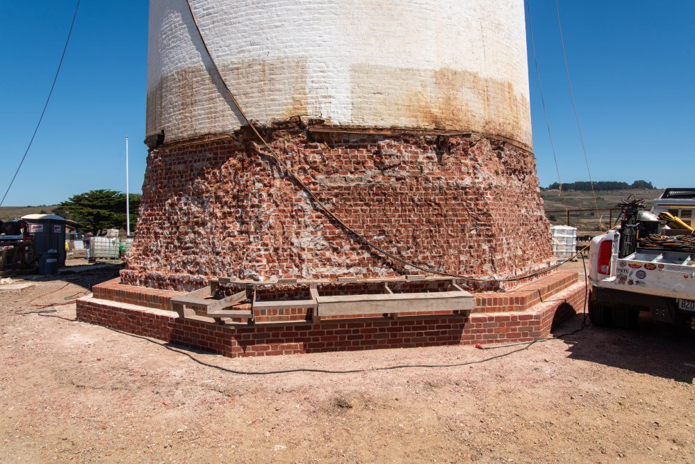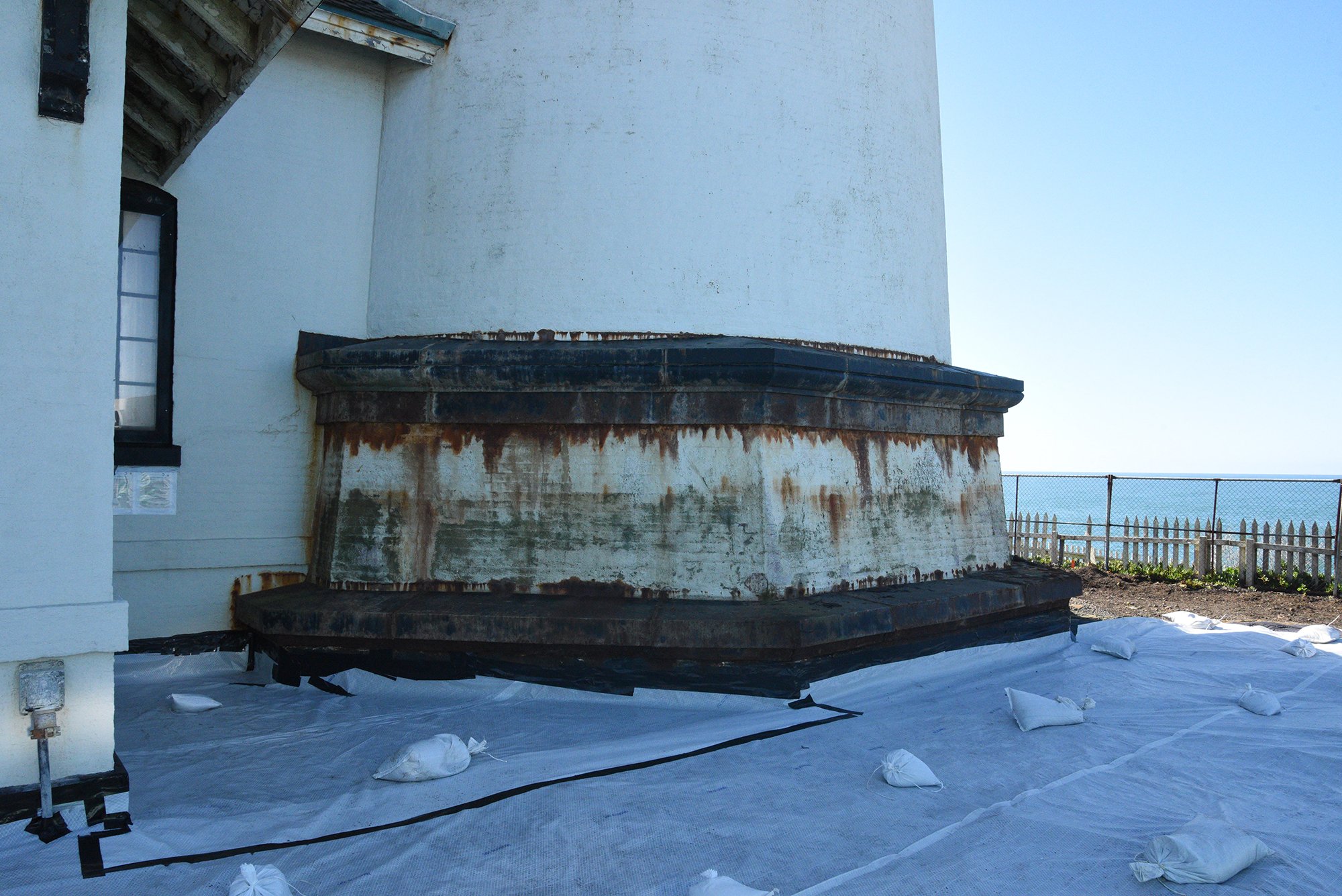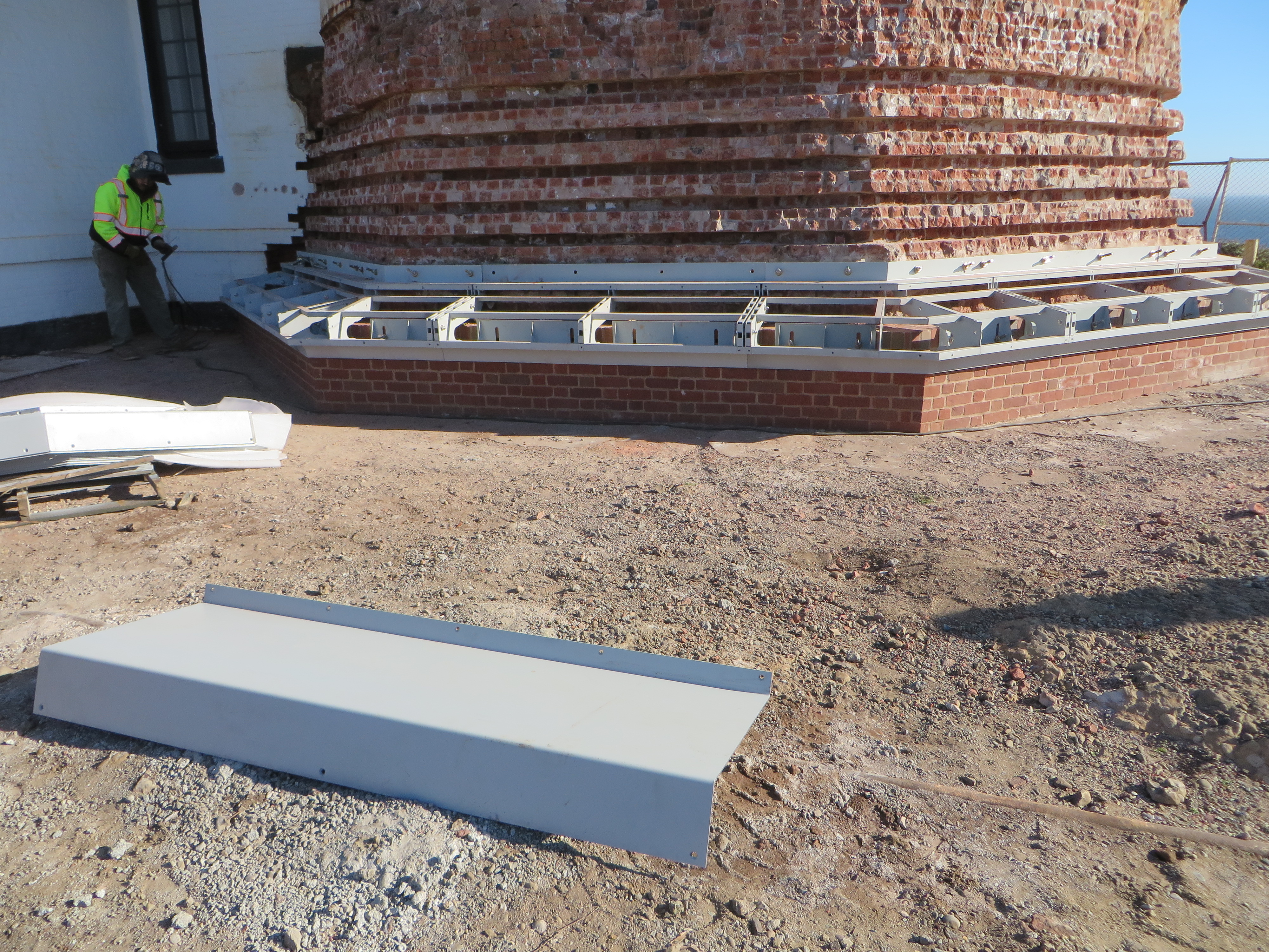As we end the year, there is some excitement at Pigeon Point. The first of the new metalwork has arrived and been installed on the lowest belt course. Robinson Iron, in Alabama, is fabricating replacement parts for the Pigeon Point lighthouse, in most cases using marine grade stainless steel rather than cast iron to improve durability. The company specializes in the historic restoration of cast metal facades, art pieces, and sculpted ornamentations adorning historic properties throughout the United States and beyond.