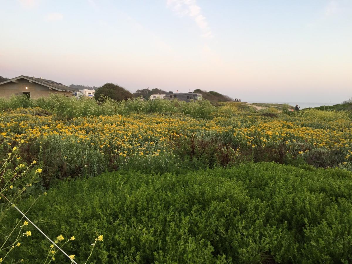 As a side note, the planted area around the campfire center was restored with native plants by the volunteers and the resources of the Native Plant Nursery at Half Moon Bay State Beach. The plants in this area are coyote bush, lizard tail, yarrow, and yellow bush lupine.